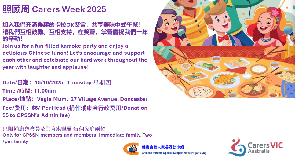 Vietnamese Families with Special Needs invites Vietnamese carers to join a walk and lunch event. in conjunction with National Carers week. We celebrate this event to honour the incredible dedication of unpaid carers. Carers will enjoy a relaxing time filled with fresh air spring at the park, delicious food and warm conversation at the restaurant. […]