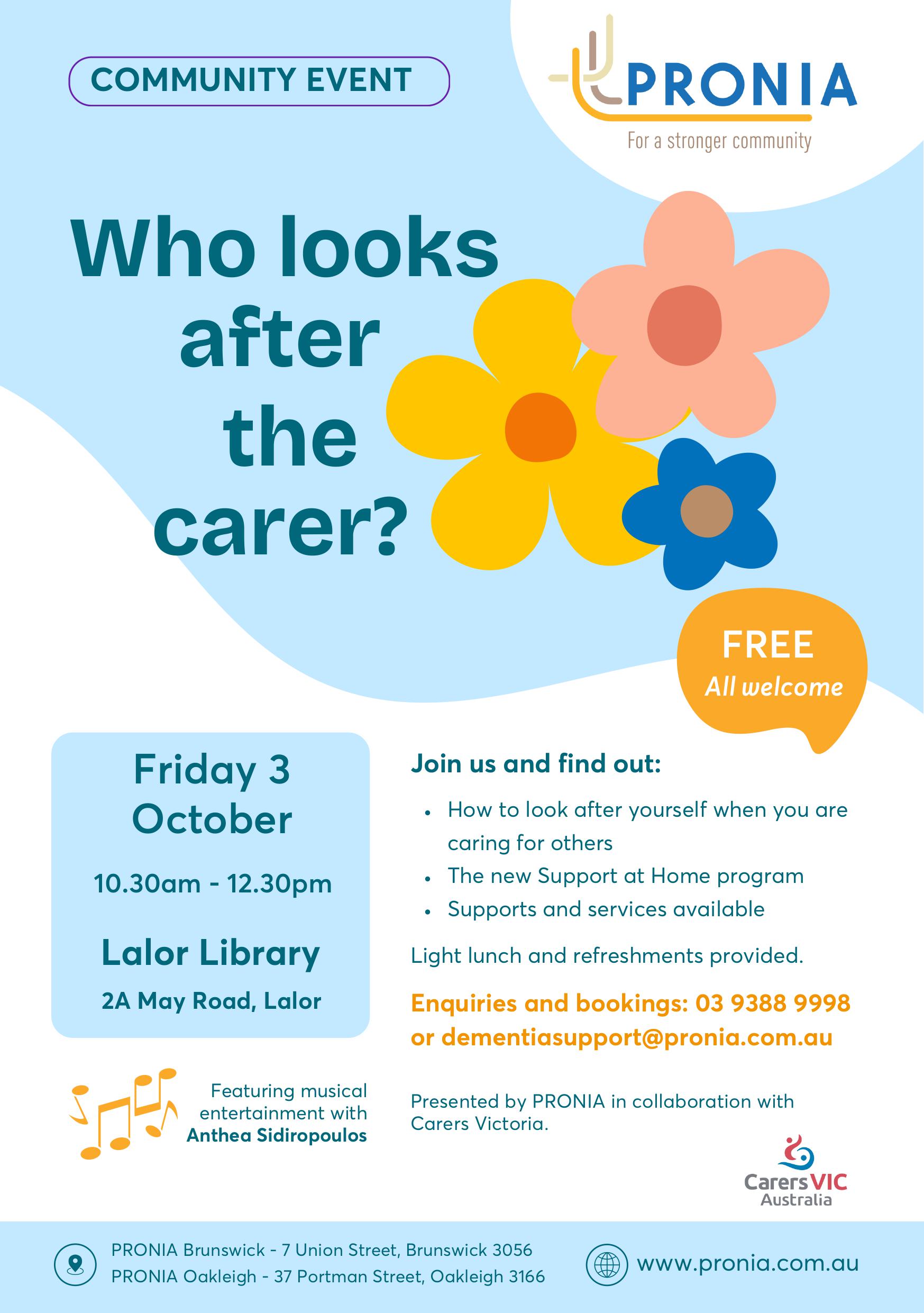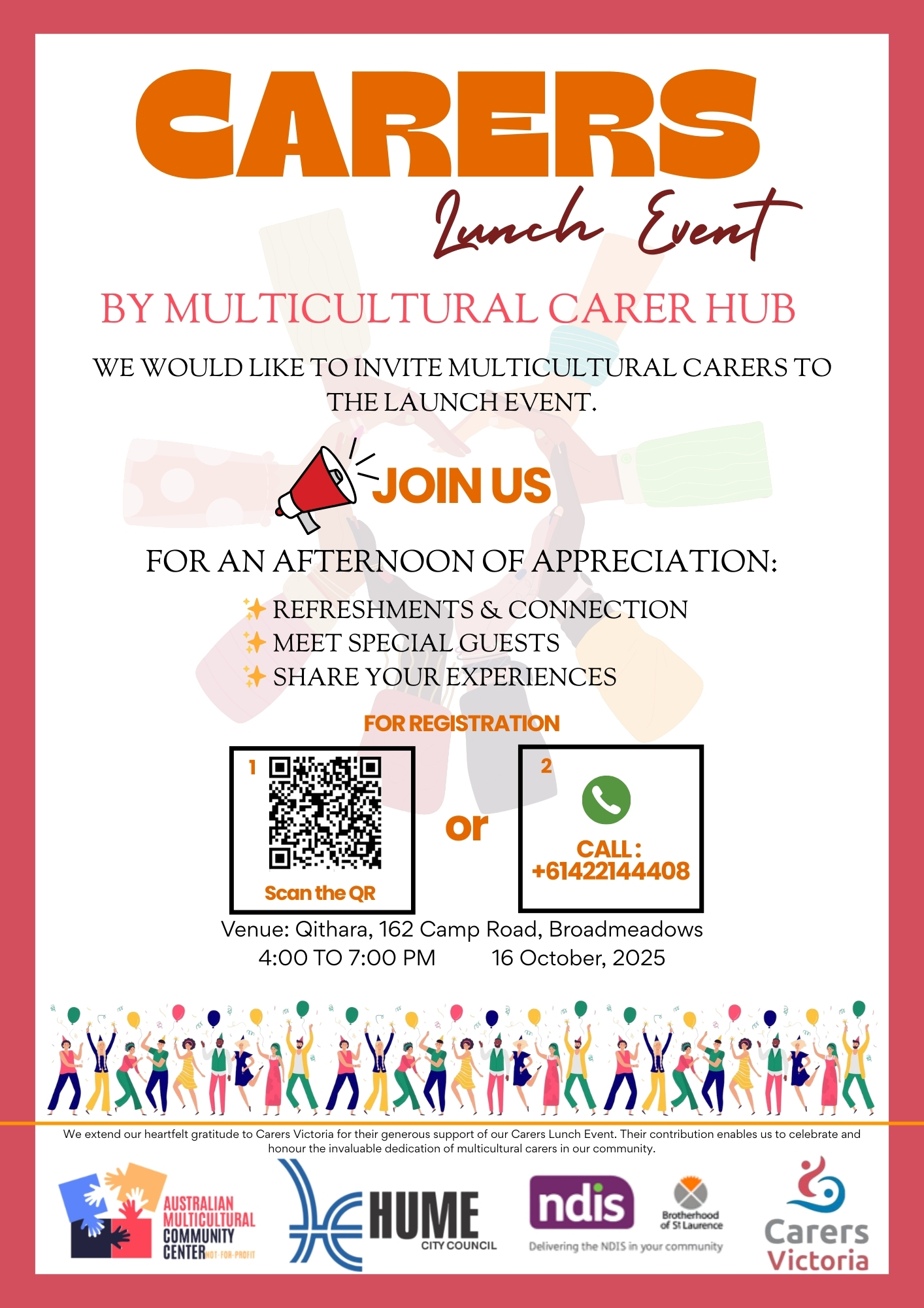 Carers Victoria acknowledges the Traditional Owners of the land on which our offices are located, the Wurundjeri peoples of the Kulin Nation, and pay our respect to Elders past and present. We acknowledge the continuing connection to land and waters. Sovereignty was never ceded.